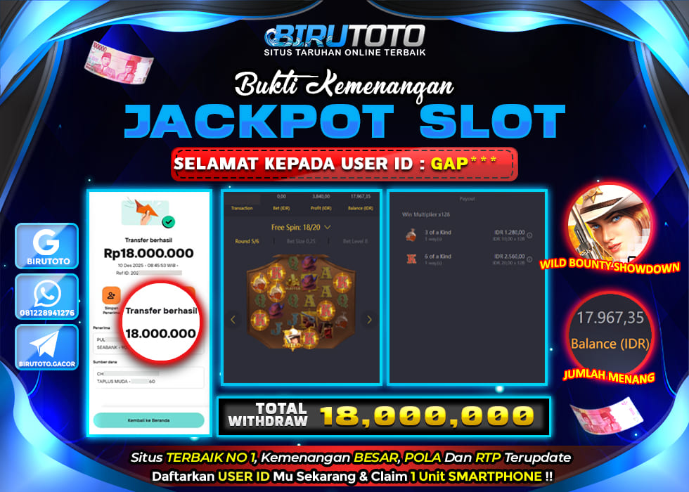 Selamat Kepada Member BIRUTOTO GA**** Telah Jackpot Di SLOT WILD BOUNTY SHOWDOWN