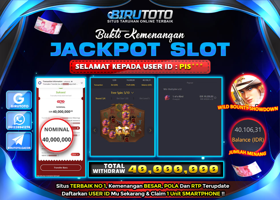 Selamat Kepada Member BIRUTOTO PI**** Telah Jackpot Di SLOT WILD BOUNTY SHOWDOWN