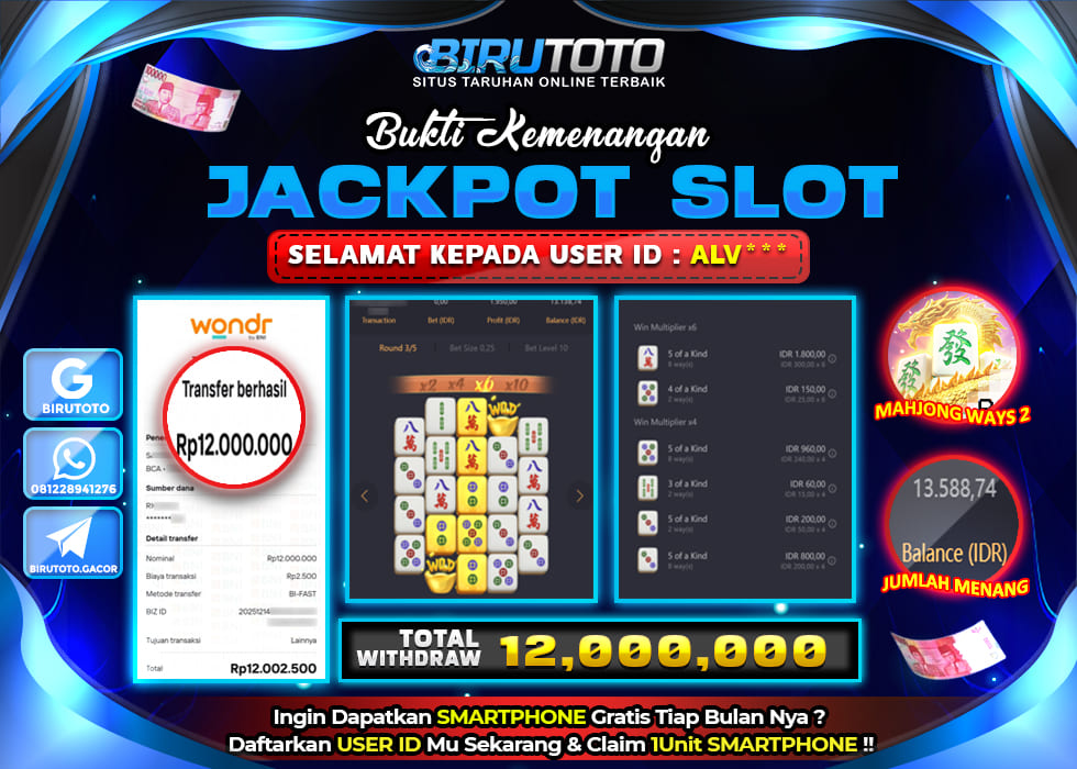Selamat Kepada Member BIRUTOTO BR**** Telah Jackpot Di SLOT MAHJONG WAYS 2