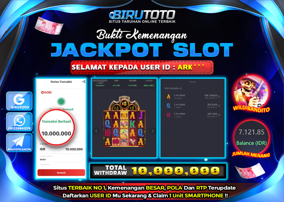BIRUTOTO JACKPOT SLOT WILD BANDITO Rp.10.000.000 LUNAS
