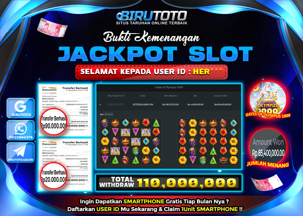 Selamat Kepada Member BIRUTOTO HE**** Telah Jackpot Di SLOT GATES OF OLYMPUS 1000