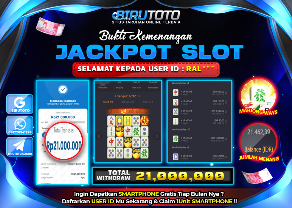 BIRUTOTO JACKPOT SLOT MAHJONG WAYS Rp.21.000.000 LUNAS